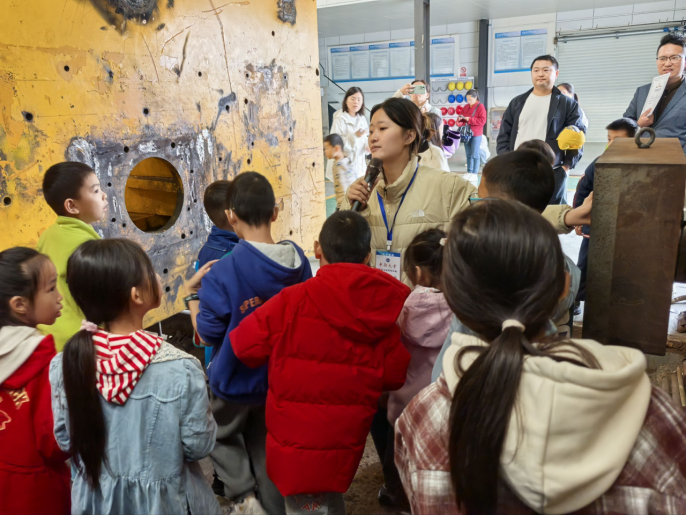 在气动与碰撞实验室区域,赵紫怡结合展示件讲述列车空气动力学外形设计、列车尾流特性及碰撞吸能结构的工作原理,让学生了解到高速运行环境下车体的安全防护逻辑。
