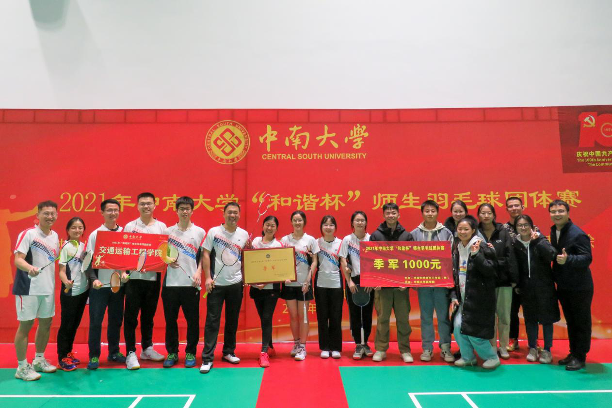为庆祝建党百年,践行“体育强国”战略,促进师生互动,弘扬团队精神,12月11日,中南大学“和谐杯”师生羽毛球团体赛在新校乒羽馆举行。本次大赛由学工部主办,共有32个学院及培养单位参赛。交通运输工程学院宋晓东...