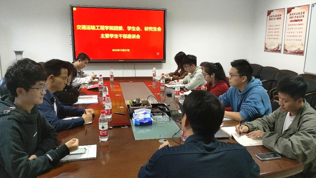 10月27日16:00,交通运输工程学院团委、学生会及研究生会主要学生干部座谈会在交通楼322顺利举行,会议围绕近期团学工作开展情况进行交流讨论,学院党委副书记宋晓东、团委书记张健、团委副书记郑繁简及团委、学生会...