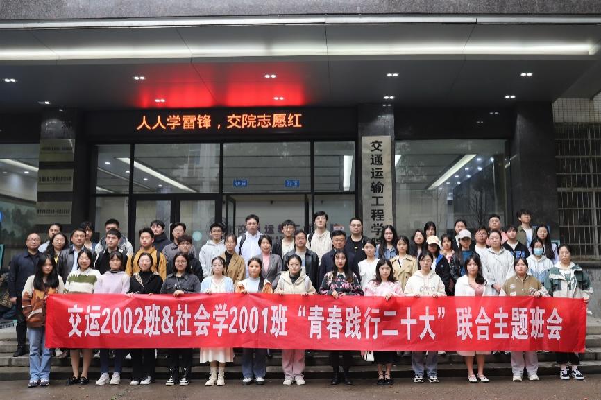 3月8日下午,交运2002班与社会2001班联合班级于铁道校区交通楼513室举行“青春践行二十大”主题班会。中南大学党委副书记黄健陵、交通院党委书记贺志军、交通院党委副书记宋晓东、公管院党委副书记耿贵斌、交运2002班...