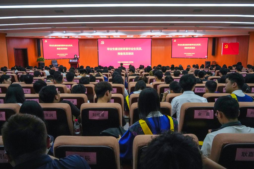 6月20日上午,交通运输工程学院于天心校区大学生科技文化中心举行2025届毕业生廉洁教育暨毕业生党员、预备党员培训,党委书记袁世平,副书记李苑,高速列车研究中心副教授阳程星及全体毕业生党员、非党员毕业生代表参...
