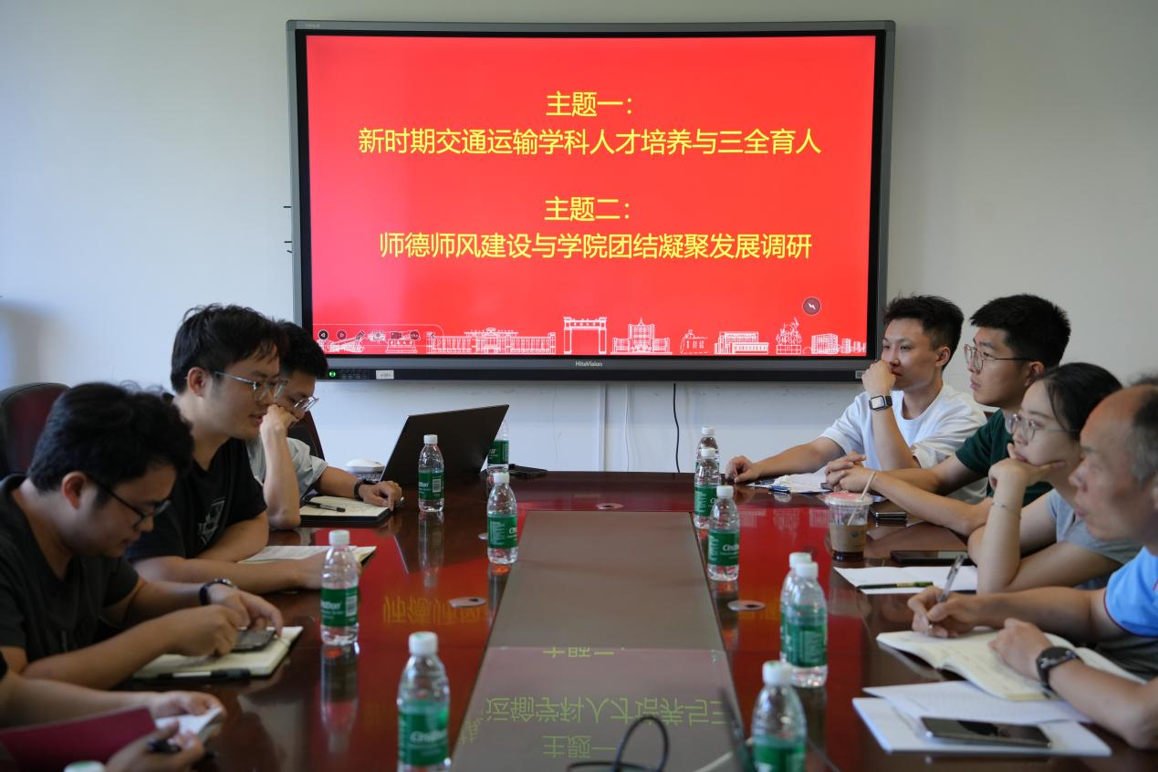 为扎实推进深入贯彻中央八项规定精神学习教育,7月4日上午,我院在交通楼322会议室召开新进教师调研座谈会。学院党委副书记李苑主持会议,周汉楚等11位青年教师围绕“新时期交通运输学科人才培养与三全育人”“师德师...