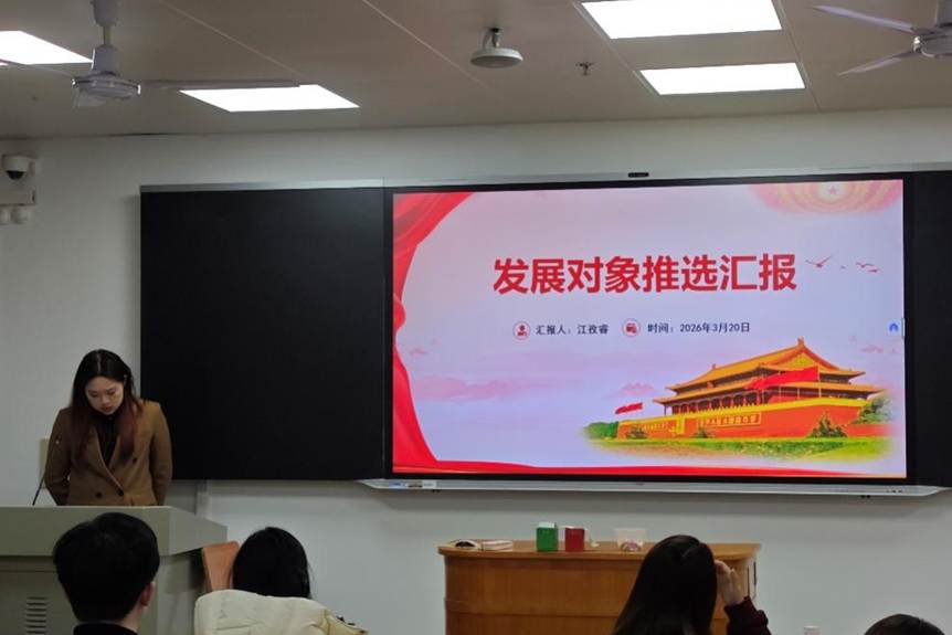 为深入推进基层党组织标准化建设,切实保障新发展党员的政治素养与综合能力,3月20日19:00,研究生第二党支部在世纪楼A103教室举行拟发展对象推选会。会议由支部书记胡奕同志主持,全体支委,部分党员、群众代表及8名发展对象候选人参加会议。