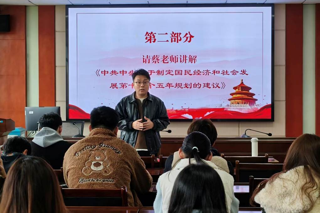 随后,支部书记蔡明旭同志围绕《中共中央关于制定国民经济和社会发展第十五个五年规划的建议》开展专题讲解。他结合交通运输行业发展趋势与高校学生党员的成长使命,对“十五五”规划建议的核心要义、目标任务与实践要求进行了系统解读,引导支部党员主动将个人学业发展、科研规划与国家发展大局紧密结合。