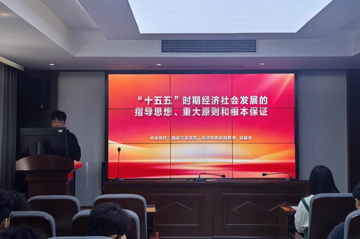 会议伊始,全体党员共同观看了中央党校赵振华教授主讲的“‘十五五’时期经济社会发展指导思想、重大原则和根本保证”专题党课。赵振华教授系统阐述了未来五年我国经济社会发展的战略方向,重点围绕科技自立自强、新质生产力培育等内容进行深入解读,并对“六个坚持”重大原则作了详细讲解,强调党的全面领导是做好各项工作的根本保证。整堂党课视野宏阔、分析透彻,帮助支部党员从宏观层面把握了“十五五”规划的战略考量。