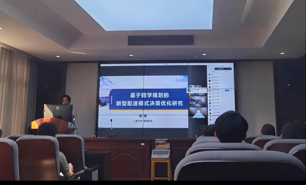 随后,镇璐教授在《基于数学规划的新型配送模式决策优化研究》报告中,对“一致性VRP”“车机协同”“高度维度VRP”“多车场多车程VRP”“复杂配送场景VRP扩展应用研究”“融入人工智能的配送优化研究前沿”等研究领域进行了详尽的介绍,并结合社会实际问题,用深入浅出的语言,让与会者认识到了MIP建模与算法设计在科学研究中的关键作用。