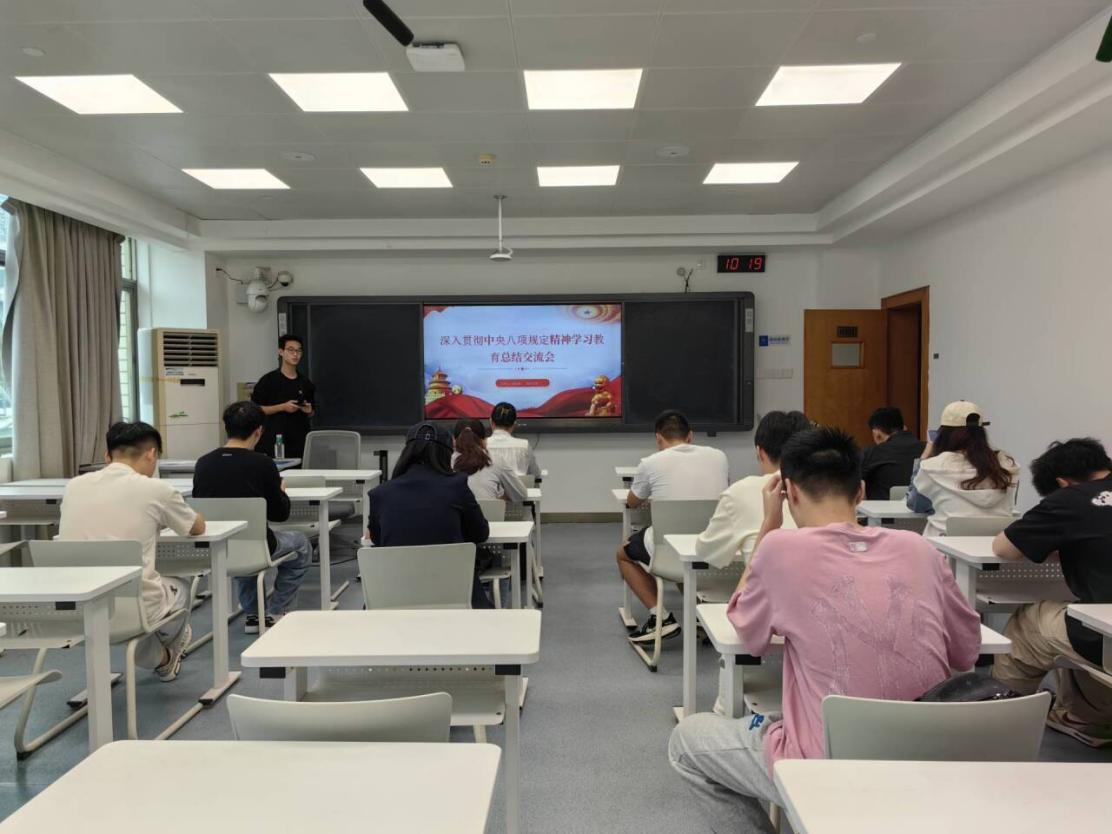 9月24日,交通运输第二学生党支部于世纪楼主楼301举行深入贯彻中央八项规定精神学习教育总结会,本次活动由张浩睿同志主持,全体党员参与。