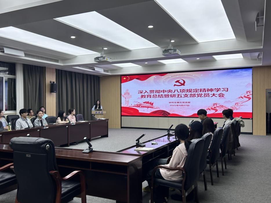 研究生第五党支部召开深入贯彻中央八项规定精神学习教育总结会暨党员大会