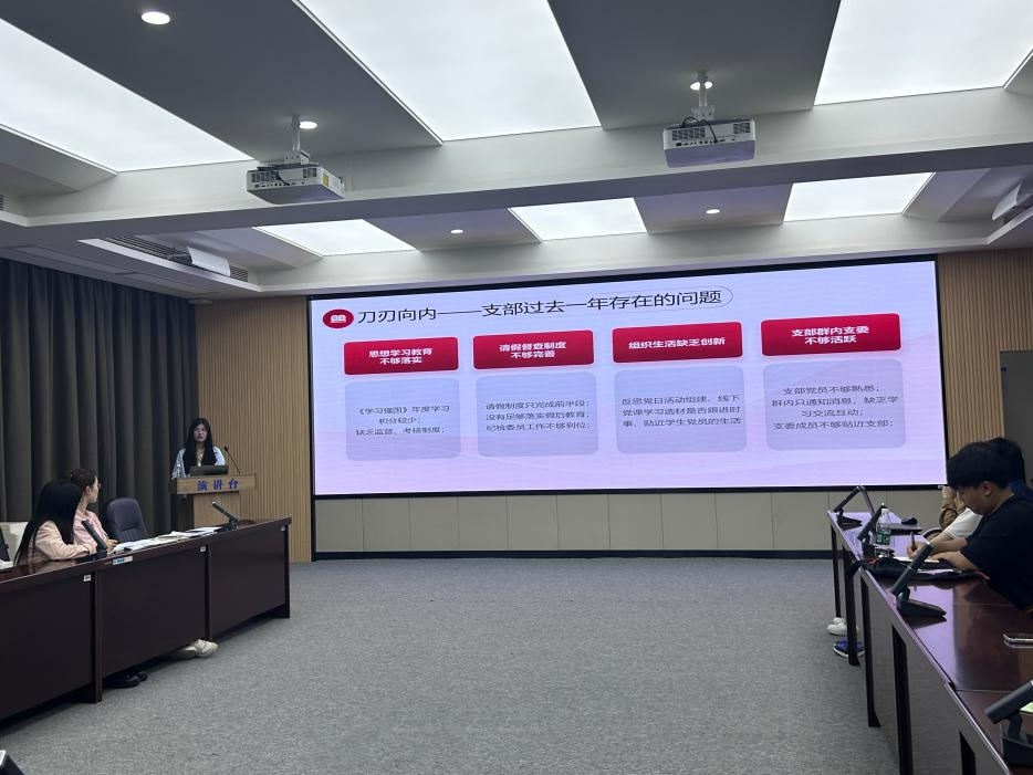 在支部学习教育总结环节,张子腾代表支委直面问题、深刻复盘。她指出,过去一年支部工作在多方面仍存在改进空间:一是思想学习教育的落实力度不足,常态化的监督与考核机制仍需完善;二是请假督查制度的执行不够到位,全流程管理存在短板,相关监督职责的发挥还需进一步加强;三是组织生活的形式创新度有待提升,活动与课程内容的设计吸引力和针对性有待增强;四是党员间的交流互动与集体学习氛围需要进一步营造。针对上述问题,支部新一届支委已着手制定相应的整改举措,推动支部工作提质增效。