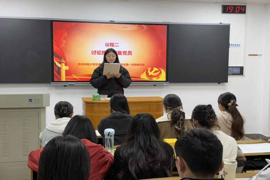 会议伊始,支部全体成员起立,奏唱国歌。刘思序同志简要介绍了会议的流程及要求,支部大会讨论预备党员接收与转正相关事宜。随后,发展对象樊佳鑫、王艺超同志依次上台宣读《入党志愿书》,并详细介绍其个人基本情况、对党的认识的转变历程、入党动机以及理论知识学习情况,并结合实际表达了自己加入中国共产党的决心和强烈愿望。两位同志发言完毕后,他们的入党介绍人介绍其基本情况。组织委员罗汇祎同志汇报支部审查结论,与会党员充分讨论并发表意见。紧接着,支部正式党员进行了无记名投票。最终,两位同志全票通过,大会形成同意樊佳鑫、王艺超同志为中共预备党员的决议,支部副书记李朵同志宣读了这一表决决议。