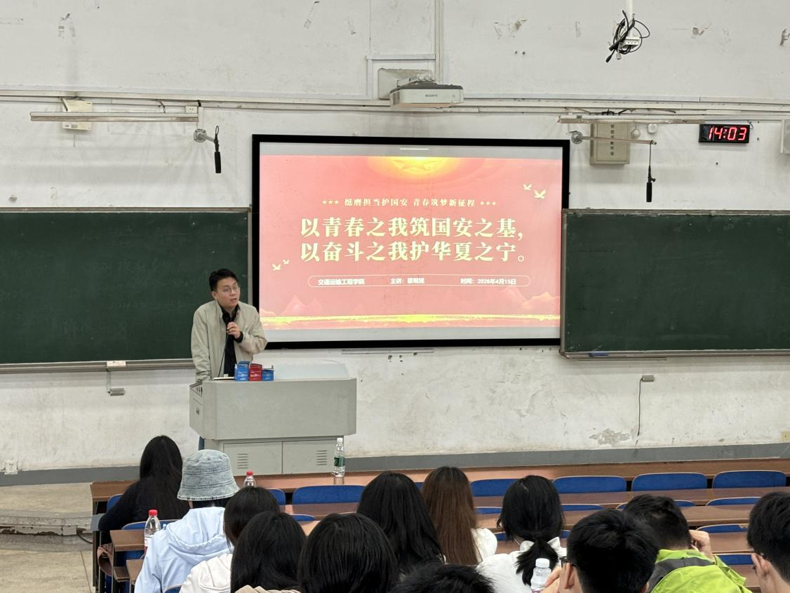 为深入学习贯彻总体国家安全观,进一步引导广大团员青年提升国家安全意识,自觉维护国家安全,4月15日下午,交通院在潇湘校区D107开展“挺膺担当护国安,青春筑梦新征程”主题团课,由团委书记蔡明旭老师主讲,学院团委学生会干部及25级部分团支部参与此次学习。