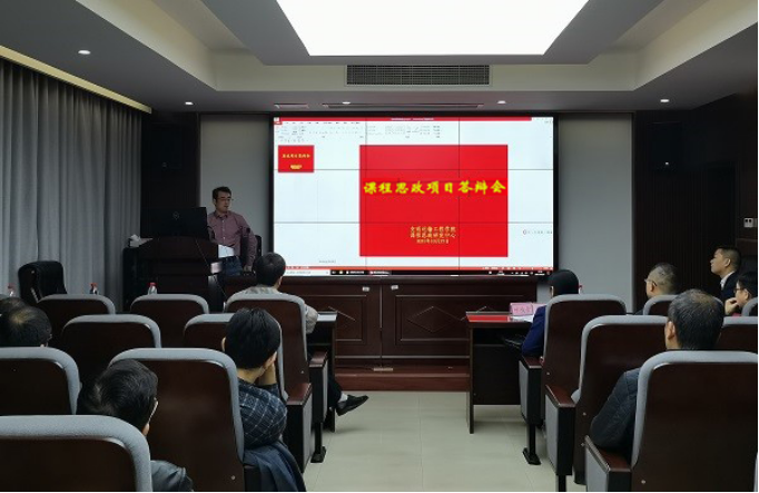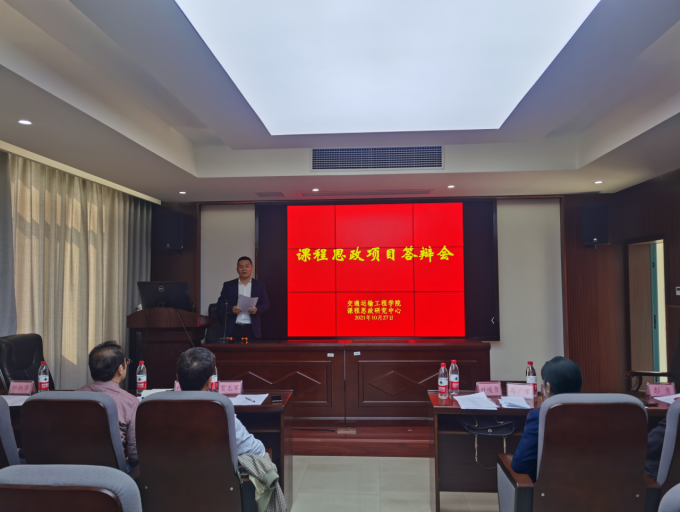 为贯彻落实学校课程思政建设相关工作要求,进一步完善学校课程思政工作方案,10月27日下午14:30,交通运输工程学院课程思政中心于交通楼425教室举行了思政项目答辩会,会议在激扬热烈的气氛中一直持续到下午18:30。学校教学督导、马克思主义学院谭希培教授、学院党委书记贺志军、学院副院长彭勇、副院长张英贵、党委委员叶峻青、综合办主任邹杨华出席本次会议并担任评委。会议由学院副院长陈维亚(图1)主持。