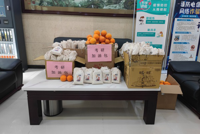 在此之后,老师们亲手为考研的同学们送上福袋,并叮嘱同学们要劳逸结合,放平心态、从容应考,遇到任何困难都可以随时向学院寻求帮助。贴心的礼物和真切的祝福令身处紧张备考的学子们深切地感受到了来自学院的温暖和关爱,同时备受振奋。