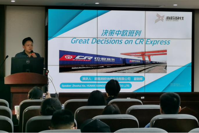 5月17日下午,交通运输工程学院邀请长沙湘欧快线物流有限公司总经理夏朝晖先生于铁道校区交通楼425报告厅为交通院师生开展了“决策中欧班列”主题讲座。此次报告会由学院交通运输系冯芬玲老师主持,物流工程系主任张得志老师及部分研究生、本科生参加了此次专题讲座报告会。