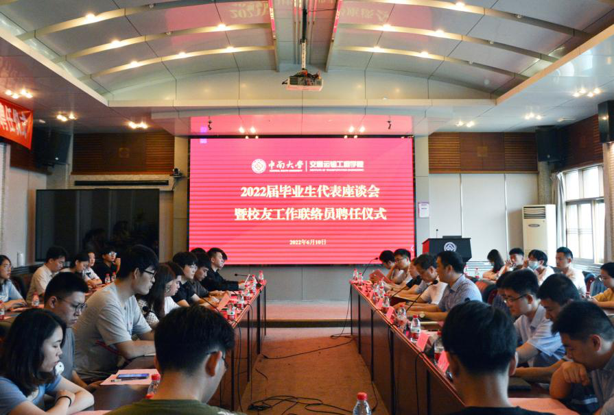 6月10日上午10:00,交通运输工程学院2022届毕业生代表座谈会暨校友工作联络员聘任仪式于世纪楼14楼会议室顺利举行。学院党委书记贺志军、院长高广军、学院各专业系副主任和教师代表、本科生和研究生教务员、毕业班辅导员以及学生代表和校友工作联络员出席本次会议。会议由学院党委副书记宋晓东主持。