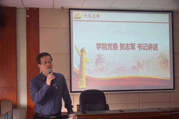 最后,学院党委贺志军书记对本次发展对象培训班学员们提出期望和嘱托。贺书记首先对同学们成为发展对象表示衷心祝贺,紧接着分享自己的入党心得。他提到,现在党组织的培训制度更加健全,理论教学更加完善,学习内容更加充实。希望学员们通过此次培训,能够自觉学习政治理论,同时将理论融入到实践中去,真正做到思想上、作风上、实践上入党。