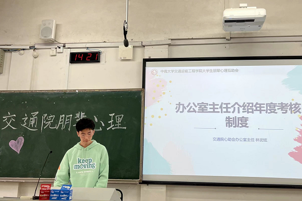培训会第二项,办公室主任林武铉对年终考核制度做出详尽的阐释。他从辅导员评估、心理专干评估、心助会评估三个方面分别介绍了心理委员年终考核的评分准则。年终考核能充分调动心理委员的工作积极性,也有助于进一步提高工作效率。