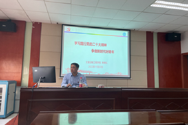 为深入学习贯彻党的二十大精神,11月20日下午15:00,交通运输工程学院党委副书记宋晓东于交通楼513为研究生第二党支部、研究生第三党支部、交通运输第二学生党支部全体党员讲授“学习践行党的二十大精神,争做新时代好青年”专题学习党课。三个支部全体党员参加本次党课学习。