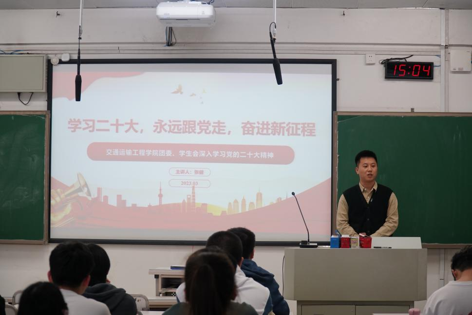 为深入学习贯彻党的二十大精神,厚植红色情怀,筑牢听党话、跟党走的思想根基,3月15日下午三点,交通院团委、学生会在新校区A座211进行了“学习二十大,永远跟党走,奋进新征程”主题学习,本次大会由交通院学生会学习部副部长杨启帆主持。