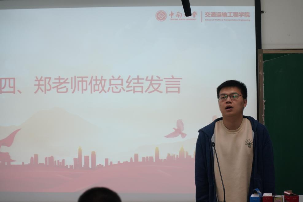 大会最后,交通院团委副书记郑繁简老师向同学们总结了本次学习的主要内容,引导同学们长期深入学习党的二十大精神。郑老师强调,同学们要在今后的工作学习中脚踏实地,打牢人生成长进步的根基。奋斗不是一句响亮的口号,当代青年奋斗要立足实际、求真务实,从一点一滴的小事做起,积极参与社会实践活动、志愿活动等,积累经验,朝着自己的目标前进。