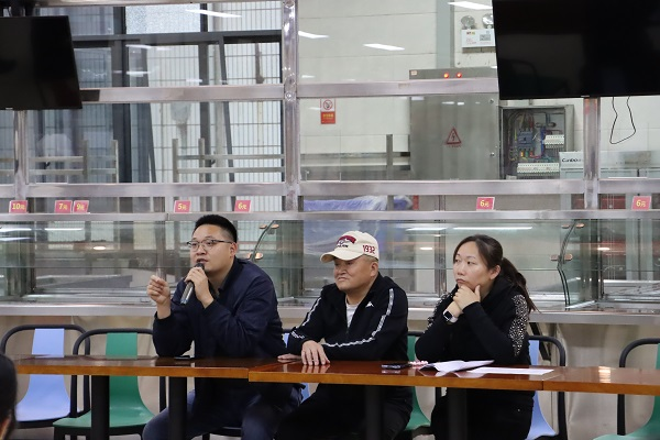 活动伊始,主持人对参与厨艺争霸赛学生厨艺指导与培训的厨艺导师们进行了一一介绍,并现场宣布了“师徒结对子”的分组名单。此次活动共有15名厨师长和30支参赛队伍参加,食堂主任黄金亮担任厨艺总指导。活动采取1位厨师长联系2支参赛队伍的形式对所有参赛学生进行针对性烹饪指导与培训。