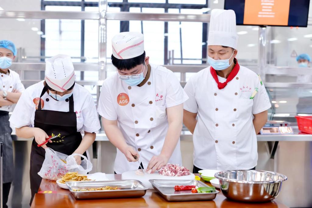 劳动是一切幸福的源泉。为进一步深化劳动教育月活动开展,丰富大学生校园文化精神生活,培养学生正确的劳动价值观和良好的劳动品质,引导学生从厨艺劳动中体悟正确的劳动理念,形成良好的日常生活劳动习惯。4月26日下午,由学生工作部(处)、后勤保障部主办,交通运输工程学院和饮食服务中心共同承办的“劳动‘美’遇上中南‘味’”大学生厨艺争霸赛决赛在校本部三食堂二楼举行。学生工作部(处)副部长姚勇、后勤保障部副部长胡壮志、交通运输工程学院党委副书记宋晓东、后勤保障部关工委常务副主任陈哲启、学工部学生事务办公室主任刘勇、后勤保障部饮食服务中心主任周鹏到场指导,由李江涛、黄金亮、方胜、吴华平、邓革平等五位厨师担任专业评委。现场还有各学院共计30名大众评审与30支学生参赛队伍,本次活动由李惠妹、张春浩同学主持。