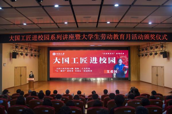 为积极推进“五育并举”,全面加强新时代学生劳动教育,5月24日下午3:00,中南大学大国工匠进校园讲座暨大学生劳动教育月系列活动颁奖仪式于中南大学毓秀楼和声堂顺利举办。2021年“大国工匠年度人物”、湘潭钢铁集团有限公司焊接顾问艾爱国受邀为中南大学学子授课。湘钢集团领导谢致用、中南大学学生工作部副部长姚勇、后勤保障部副部长胡壮志、铁道校区关工委常务副主任张国强、副主任王诚学、交通院党委副书记宋晓东以及相关单位领导老师出席现场,中南大学各学院学生代表参加本次大会。