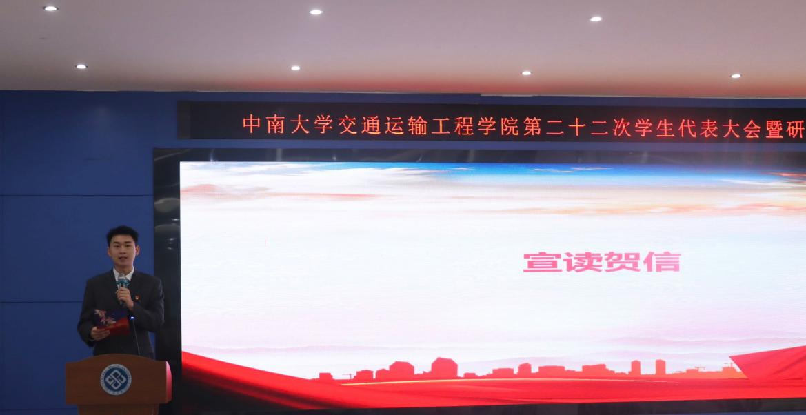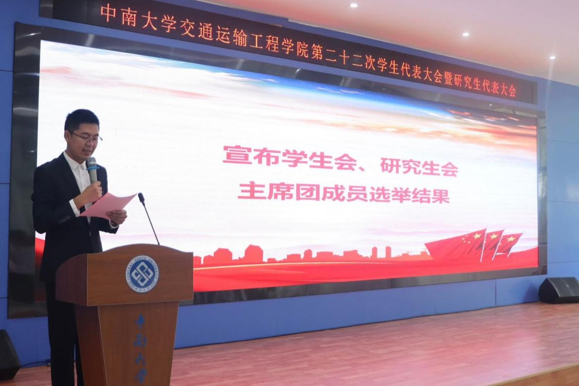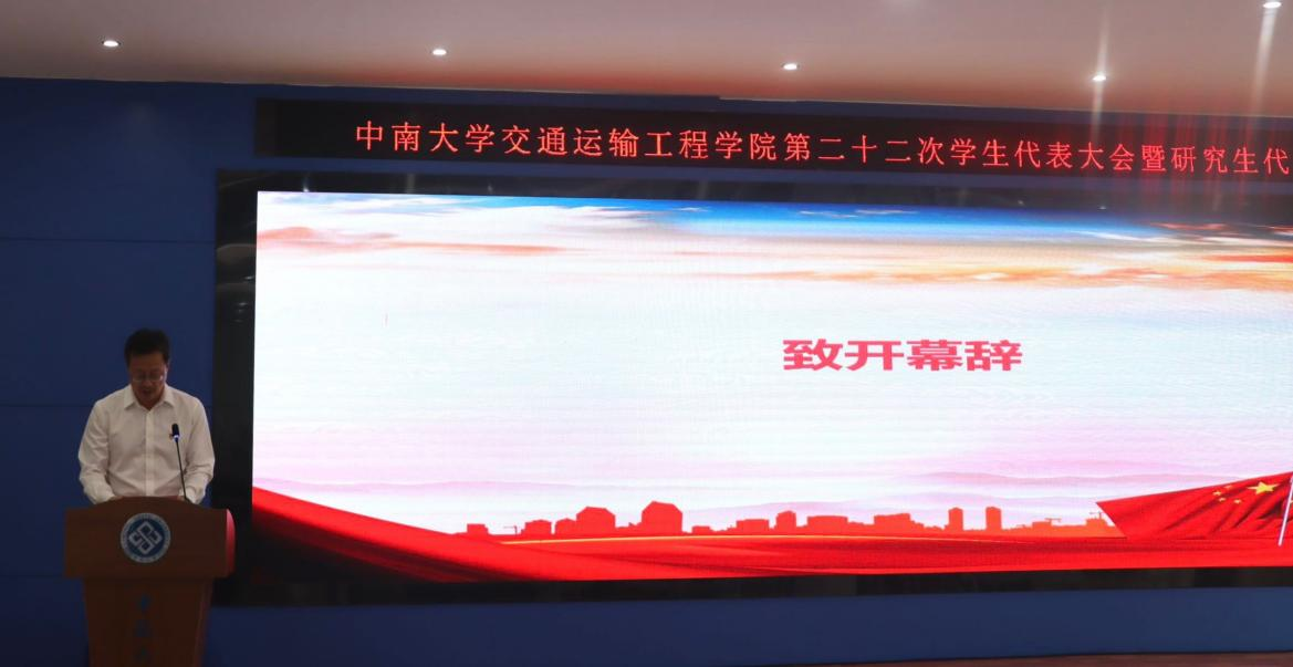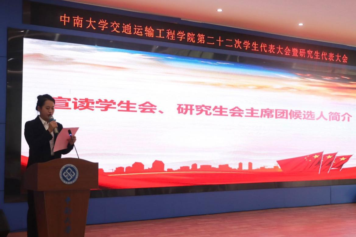 下午三点半,中南大学交通运输工程学院第二十二次学生代表大会暨研究生代表大会正式会议在庄严的国歌声中拉开帷幕。