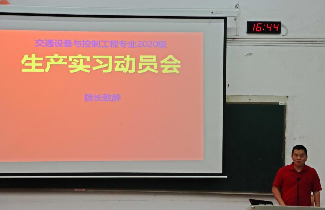 随后,交通设备与控制工程系主任章易程老师提到,本次生产实习是践行中南大学校训“知行合一,经世致用”的重要机会。他提醒同学们做好两个准备——准备好面对企业和学校的差别、准备好实习所需要的教材。他强调,要培养顽强的坚守精神,发挥用武之地,将课本所学融汇到实践所用之中。