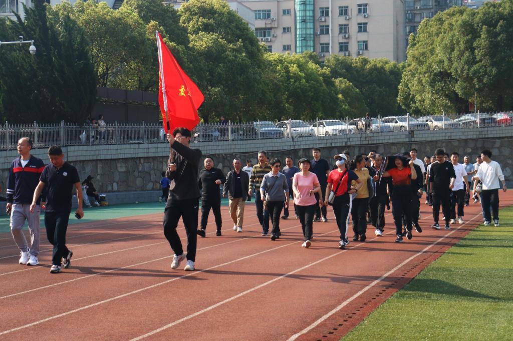 微风不燥,阳光正好。院旗引领下,学院党委书记袁世平、副书记李苑在前“领队”,全体教职工紧随其后,一同掀开健步走活动的序章。春日暖阳中,老师们步伐矫健,精神饱满,在塑胶跑道上撰写出“积跬步以至千里”的诗篇,充分彰显了朝气蓬勃、健康向上的精神风貌。