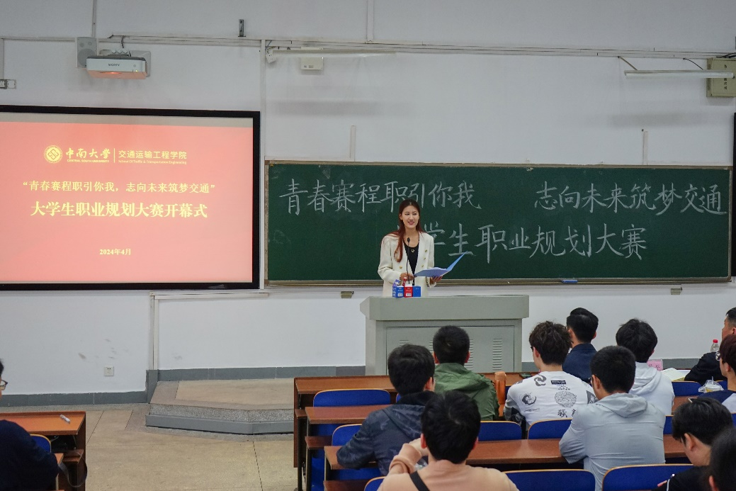 4月13日上午,交通运输工程学院第一届职业规划大赛开幕式于新校区D座303教室举办。学院党委书记袁世平、党委副书记李苑,新东方大学生学习与发展(长沙)中心校长胡彦博,23级辅导员蔡明旭、王尚君以及200多名学院学子参加本次开幕式。