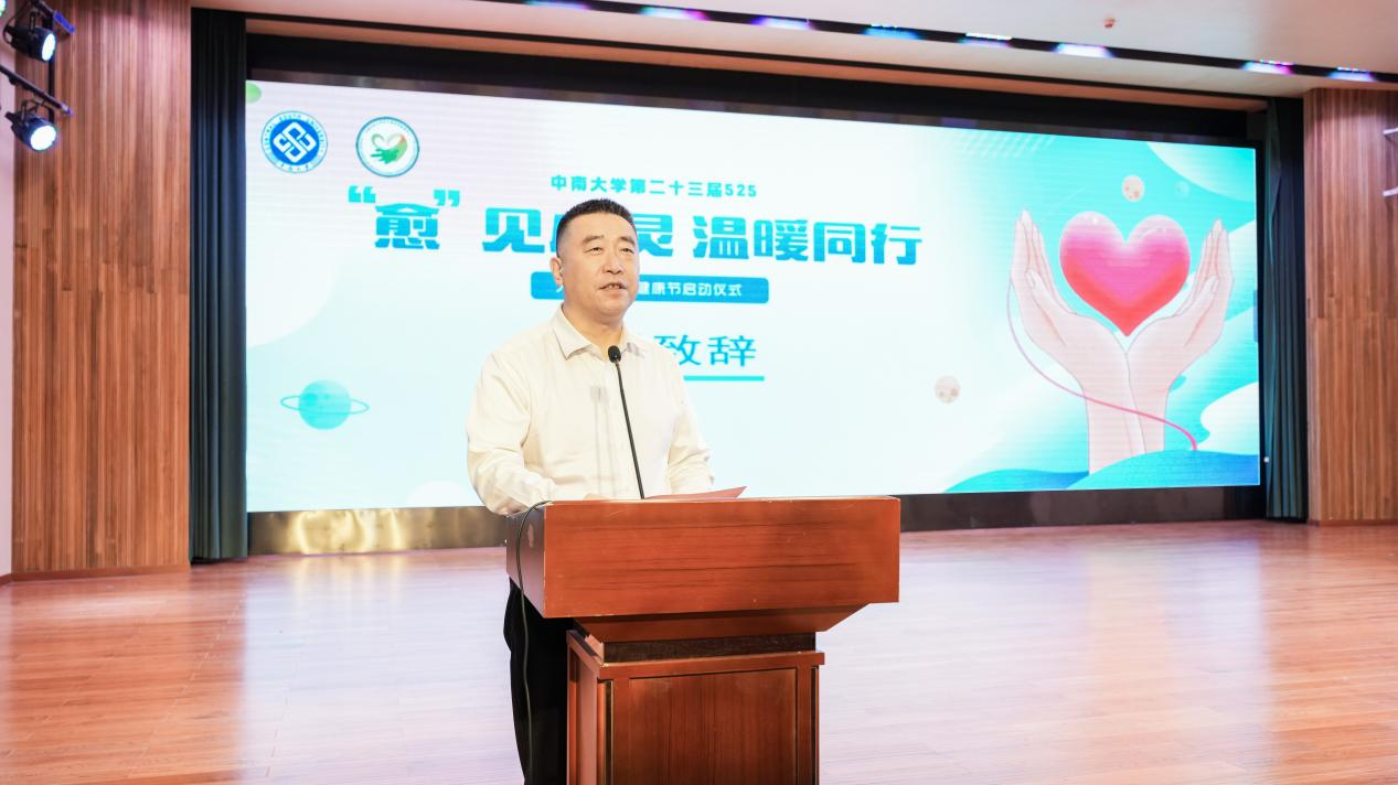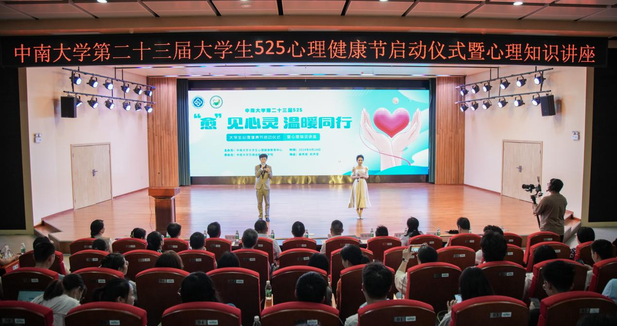 4月24日下午,中南大学第二十三届大学生525心理健康节启动仪式暨积极心理学主题讲座在毓秀楼和声堂举行。本次活动以“‘愈’见心灵,温暖同行”为主题,由中南大学大学生心理健康教育中心主办,交通运输工程学院承办,邀请清华大学社科学院心理学系孙沛教授作心理讲座,吸引了全校师生的广泛关注和参与。校党委副书记李景升,学生工作部部长欧旭理,医院管理处副处长邓奇坚,校医院院长袁秀洪,学生工作部副部长张江华、黄凯,以及部分二级学院党委副书记出席本次活动。