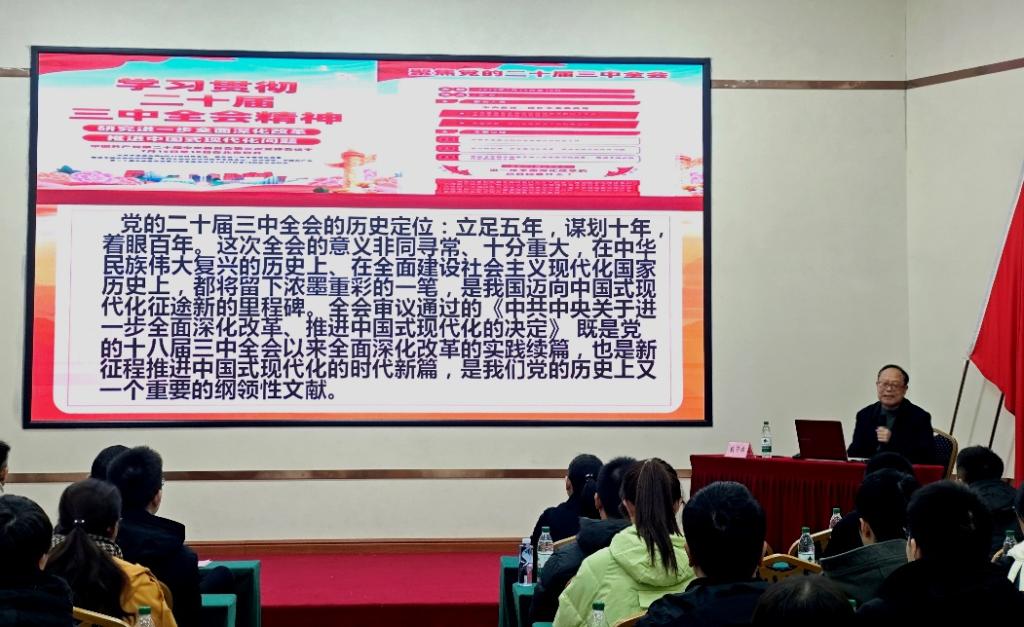 培训班邀请到中共湖南省委党校湖南行政学院教授戴安林进行授课,戴教授以“坚定不移将改革进行到底——党的二十届三中全会精神解读”为题,深入解读了二十届三中全会精神。他鼓励学员们要充分了解全会精神,以顽强斗志和实际行动为国家的现代化建设贡献智慧和力量。