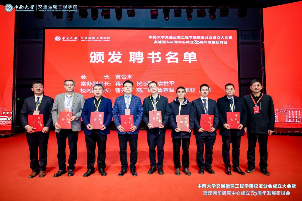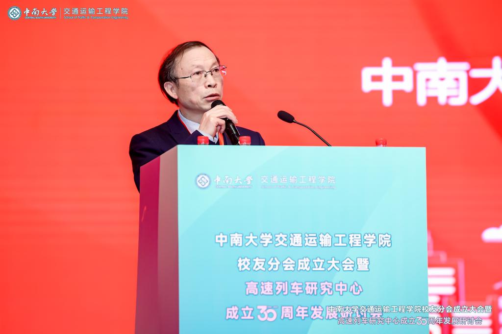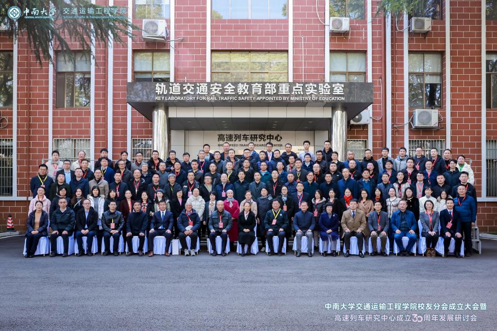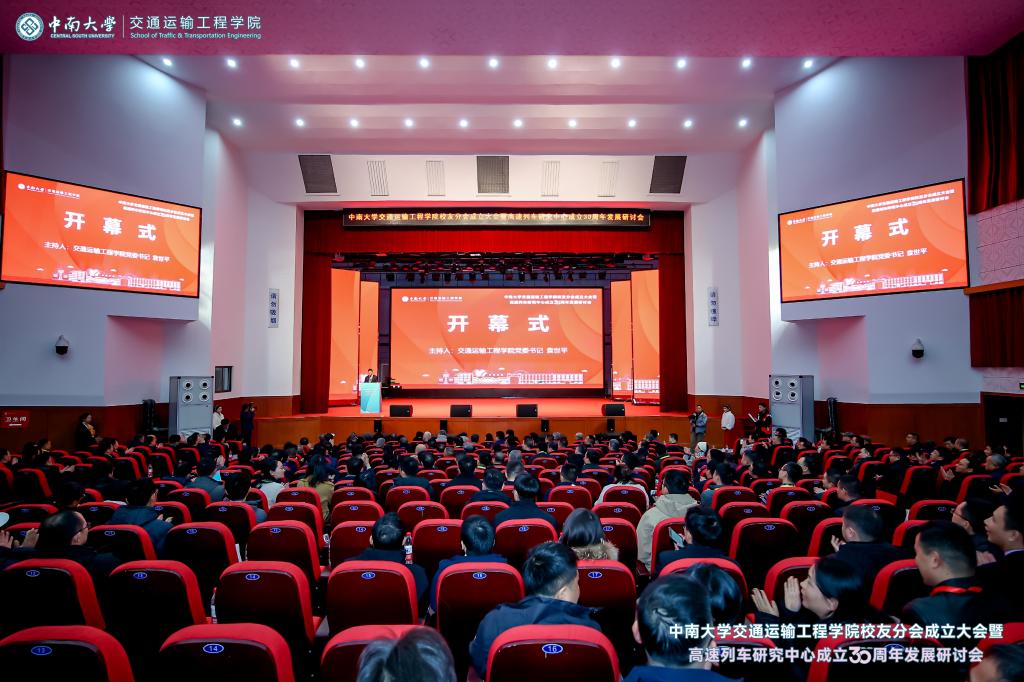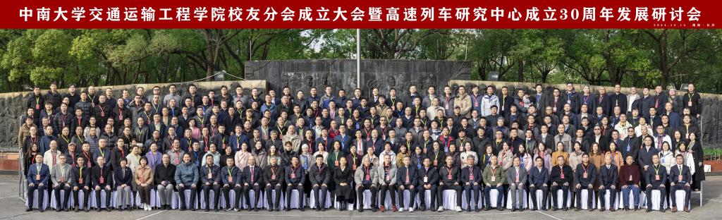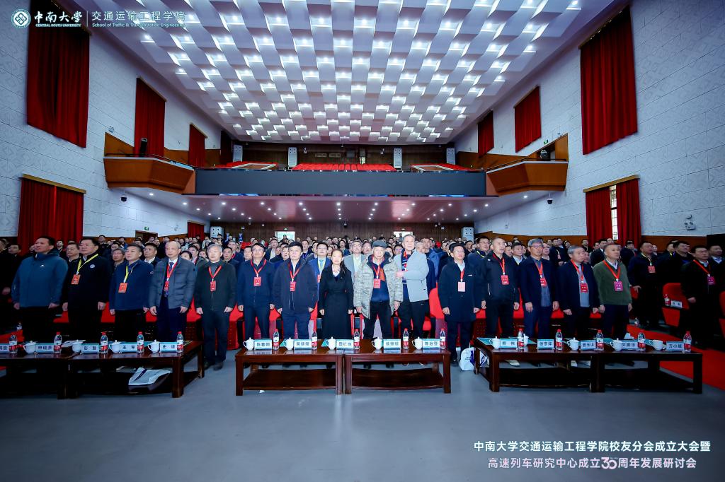 铁轨延伸情无限,校友共聚话当年。为进一步凝聚校友和社会力量,更好的在新形势、新要求下统筹推进教育、科技、人才一体化建设,助推学科建设水平持续提升,在中南大学校友总会的指导下,在广大校友的大力支持下,2024年12月14日,中南大学交通运输工程学院校友分会成立大会暨高速列车研究中心成立30周年发展研讨会于中南大学铁道校区大礼堂举行。中国工程院院士田红旗教授、校党委副书记黄健陵教授、中南大学原党委副书记陈治亚教授,中南大学原副校长陈春阳教授,校友总会秘书长余文武、校教育基金会秘书长刘宪军等领导、教师代表以及来自全国各地300余名校友嘉宾相聚长沙,畅叙母校情谊,共度美好时光。校友分会成立大会由学院党委书记袁世平主持。