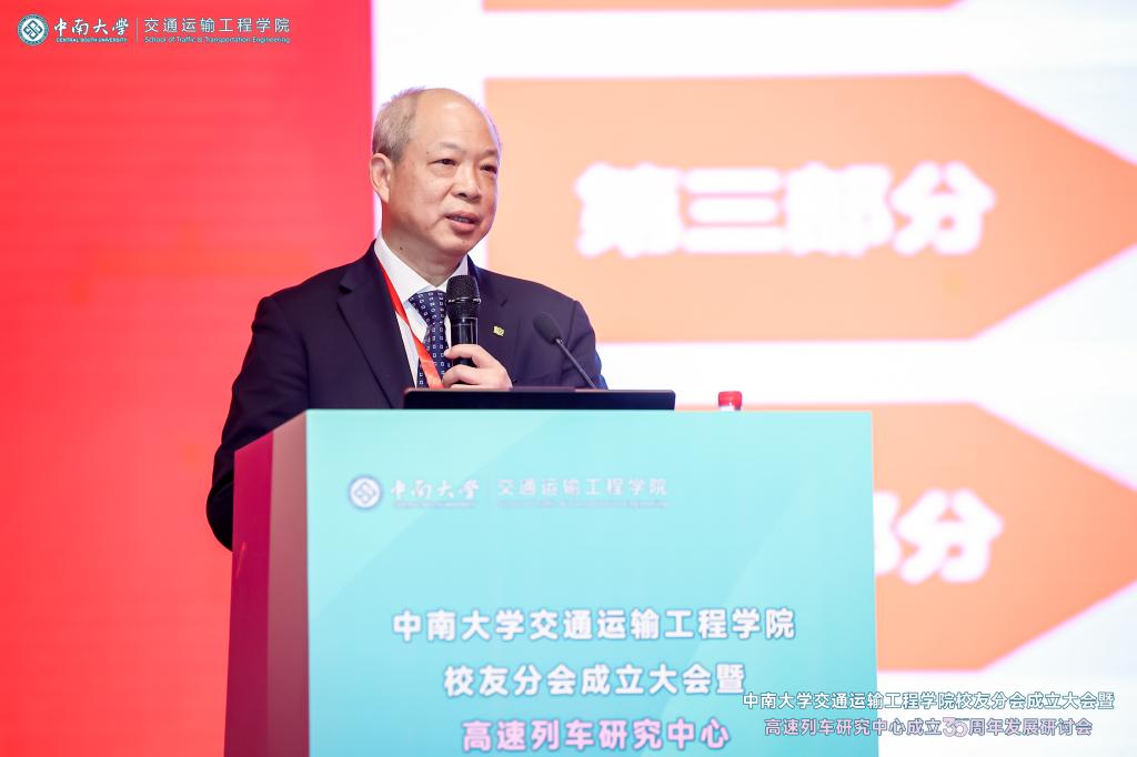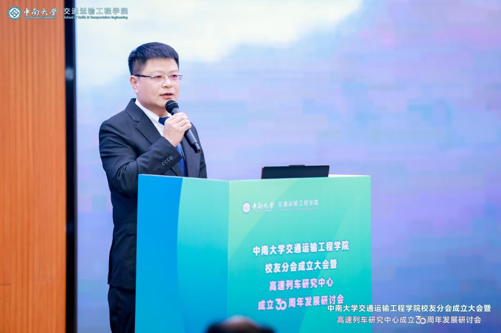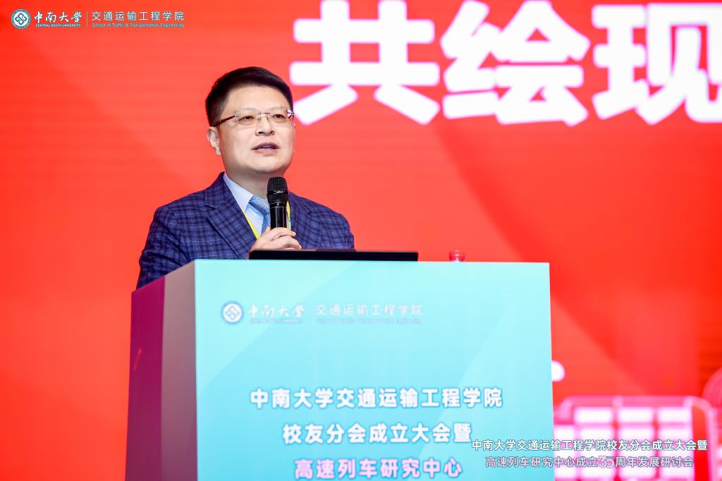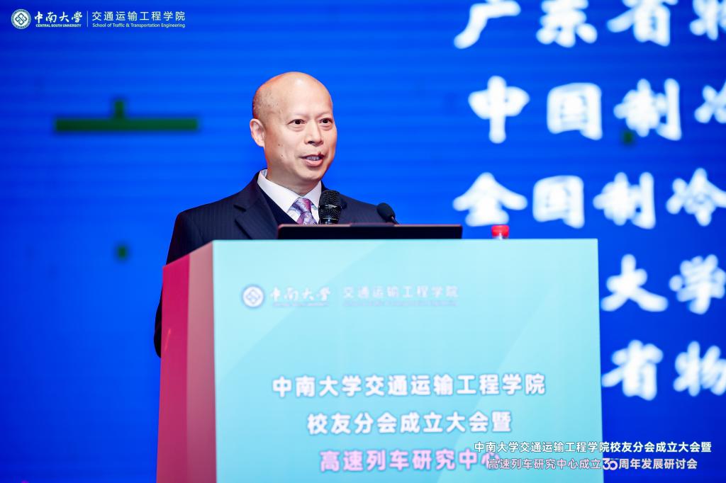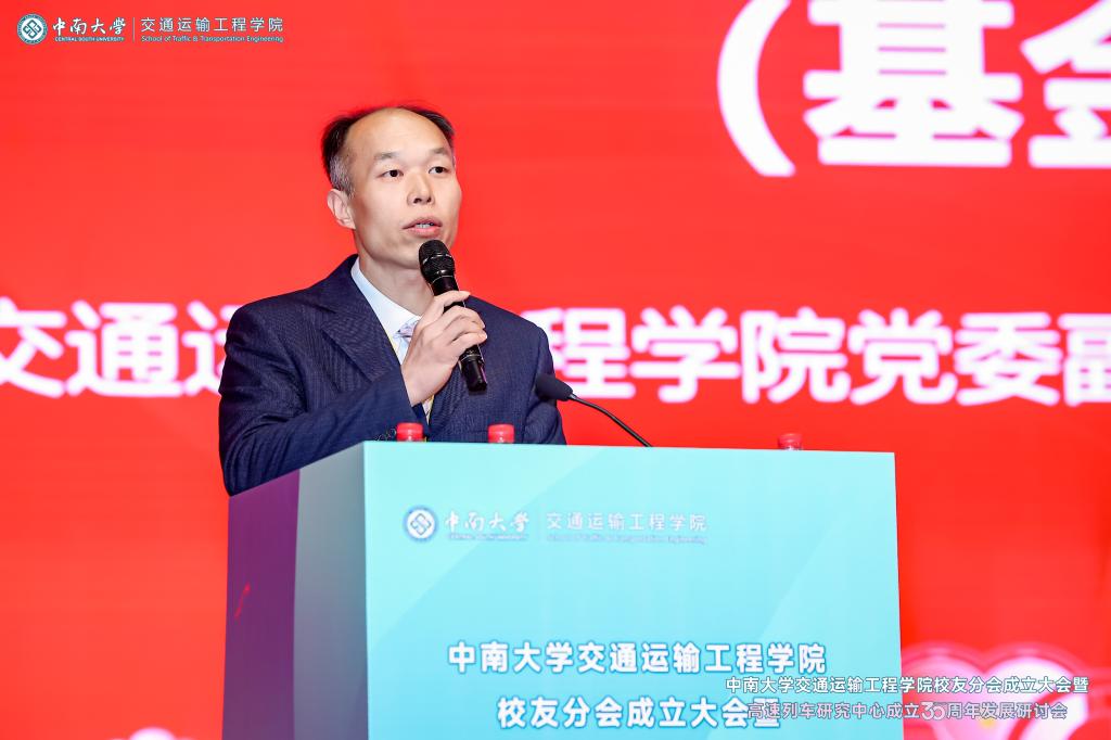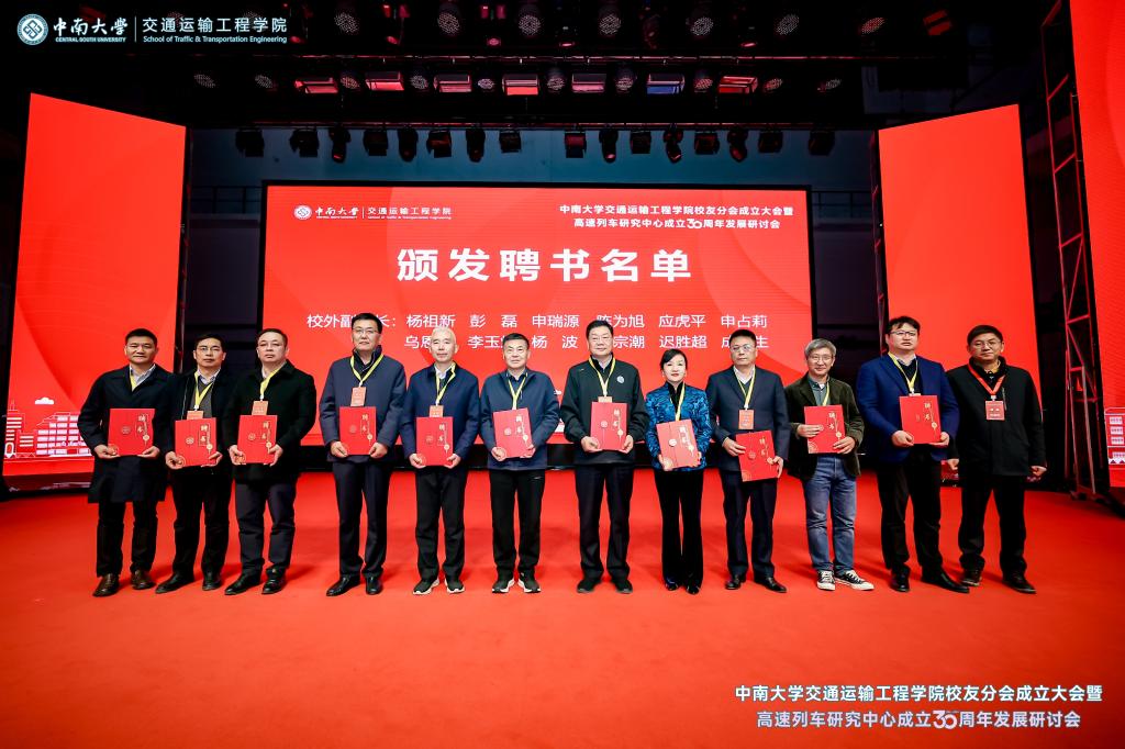 铁轨延伸情无限,校友共聚话当年。为进一步凝聚校友和社会力量,更好的在新形势、新要求下统筹推进教育、科技、人才一体化建设,助推学科建设水平持续提升,在中南大学校友总会的指导下,在广大校友的大力支持下,2024年12月14日,中南大学交通运输工程学院校友分会成立大会暨高速列车研究中心成立30周年发展研讨会于中南大学铁道校区大礼堂举行。中国工程院院士田红旗教授、校党委副书记黄健陵教授、中南大学原党委副书记陈治亚教授,中南大学原副校长陈春阳教授,校友总会秘书长余文武、校教育基金会秘书长刘宪军等领导、教师代表以及来自全国各地300余名校友嘉宾相聚长沙,畅叙母校情谊,共度美好时光。校友分会成立大会由学院党委书记袁世平主持。