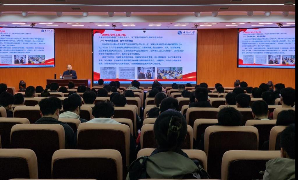 16日下午,学院新学期全体学生干部大会先后在天心校区大学生科技文化中心一楼和潇湘校区A101召开,学院党委副书记李苑、全体辅导员及学生干部参加。会上,李苑副书记对过去一年的学生工作进行总结回顾,并以自身在寒假期间的学习“充电”经历为例,鼓励同学们多元化探索并丰富自己的精神世界。随后,李苑副书记围绕守牢安全底线、做好职业规划、服务学院同学等方面,对新学期学生干部作用发挥提出要求。