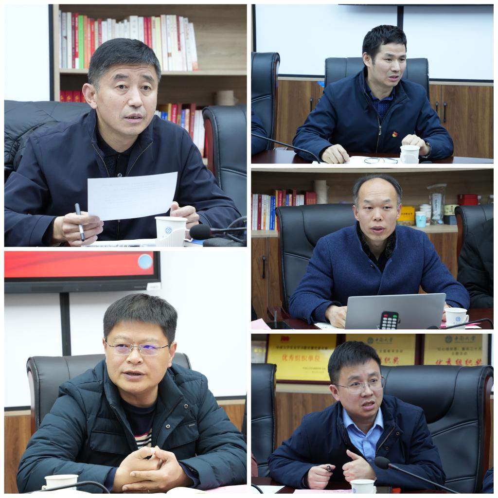 会议伊始,袁世平书记系统介绍了高质量党建工作引领学院内涵式高质量发展取得的成效、面临的问题,领导班子履职情况和未来工作计划;黄合来院长从“守底线、建红线、接天线”三个方面谈学院师资队伍建设、人才培养、科学研究、社会服务等工作的心得体会,并对学院发展思路进行了汇报。