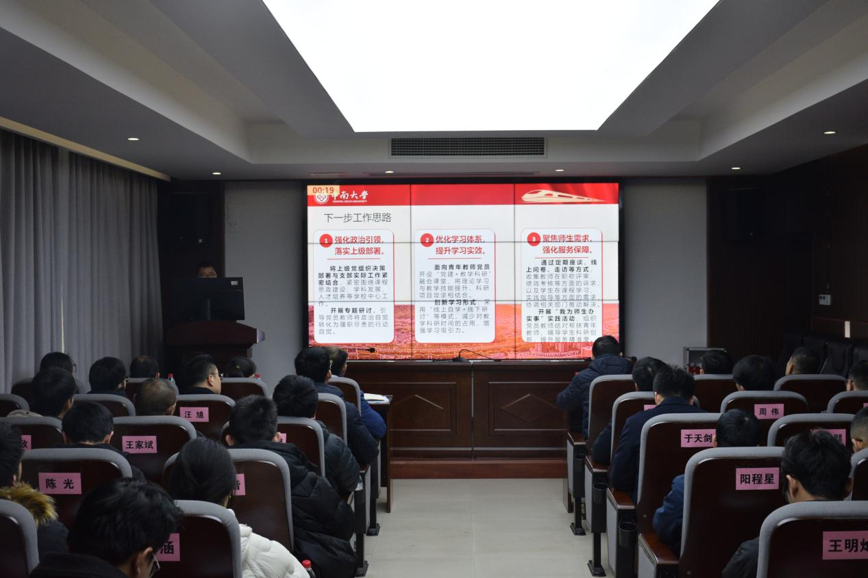 1月26日下午,交通运输工程学院在天心校区交通楼425会议室召开2025年度党支部书记抓基层党建工作述职评议会。学院党委委员、各党支部书记及副书记参会,会议由学院党委副书记李苑主持。