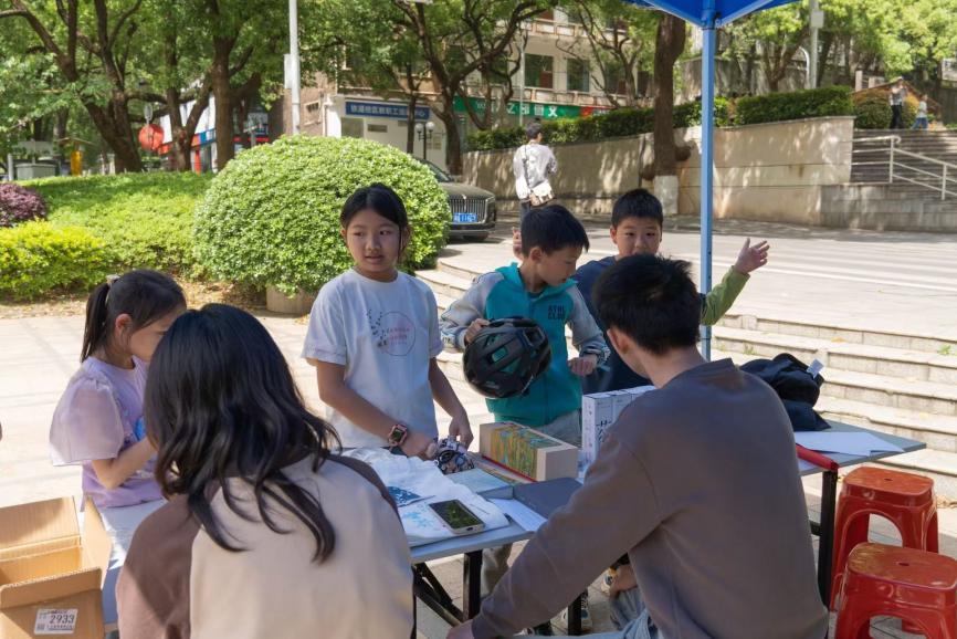 活动现场,大学生们手捧寻宝图穿梭于铁轨遗迹间,孩子们举着捏捏乐蹦跳着跑向抽奖区,成为春日校园里一道活泼的风景。6岁女孩拉着自己的父母积极参与活动,探寻宝藏,她穿梭于火车头与绿荫之间,举着寻宝图蹦跳着当起“侦探”。