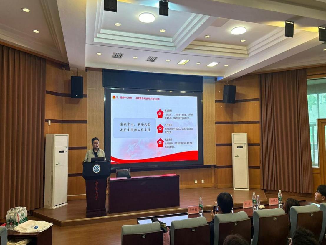 随后,蔡老师就思想引领展开了多个角度的论述。他提到,共青团的根本任务是培养社会主义事业建设者和接班人,并指出可以从主题教育、理论武装等多个方面来加强青年思想政治引领,激励青年不断奋进,争当排头兵和主力军,汇聚青春力量,为中国式现代化挺膺担当。