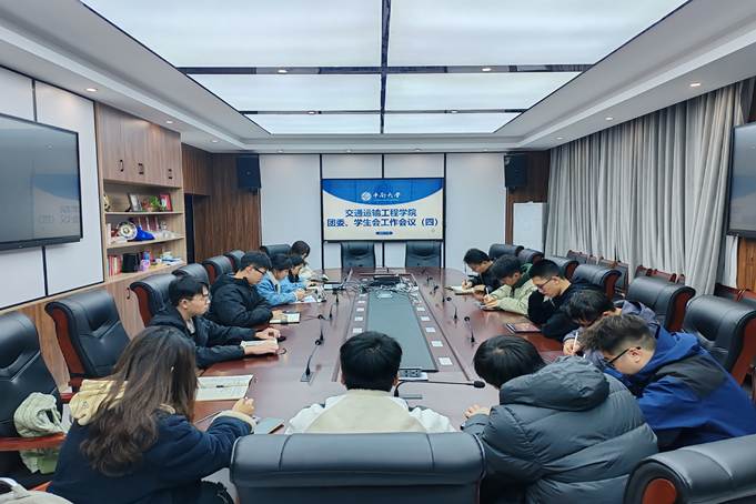 11月19日晚上,交通运输工程学院在交通楼119召开交通运输工程学院第二十四届团委、学生会第四次工作会议,学院团委书记蔡明旭以及团委、学生会主要学生干部参与本次会议。