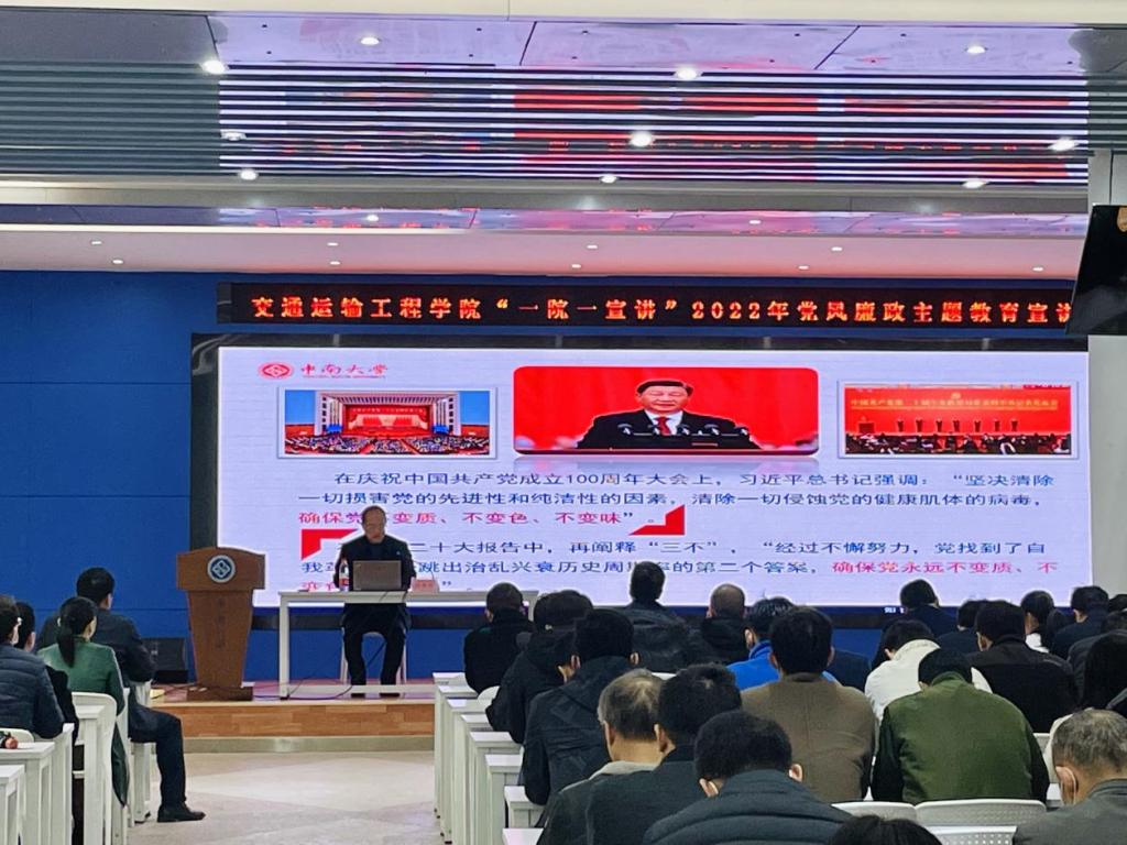 会上,刘奇伟主任从全面从严治党的新形势、当前高校存在的主要问题以及对交通运输工程学院的四点要求展开,结合中央巡视反馈意见、学校纪委近年来处置的校园典型案例,深入浅出地对常见违法违纪案件进行了剖析,为与会成员上了一堂精彩生动、内容丰富、极具警示意义的廉政教育课。他要求全院教职工要讲政治、讲团结、讲担当、讲廉洁,以党的二十大精神为指引,以更高的站位、更严的标准鞭策自己,为学校内涵建设和高质量发展做出新的更大贡献。