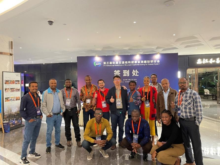 10月17日-18日,由中国铁道学会和中国中车集团有限公司共同举办的第三届轨道交通结构健康监测国际研讨会(3rd International Workshop on Structural Health Monitoring for Railway System)在青岛成功召开,中南大学交通运输工程学院2022级商务部援外硕士留学生受邀参加此次大会,交通院阳劲松老师带队参加。
