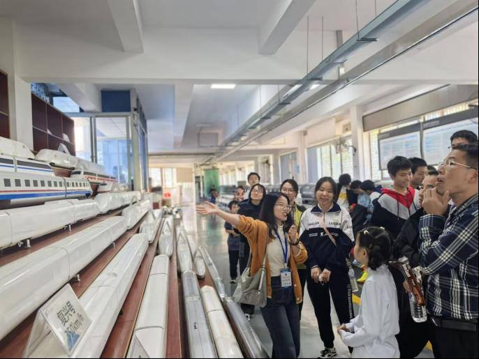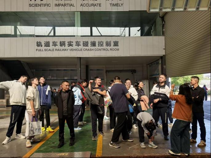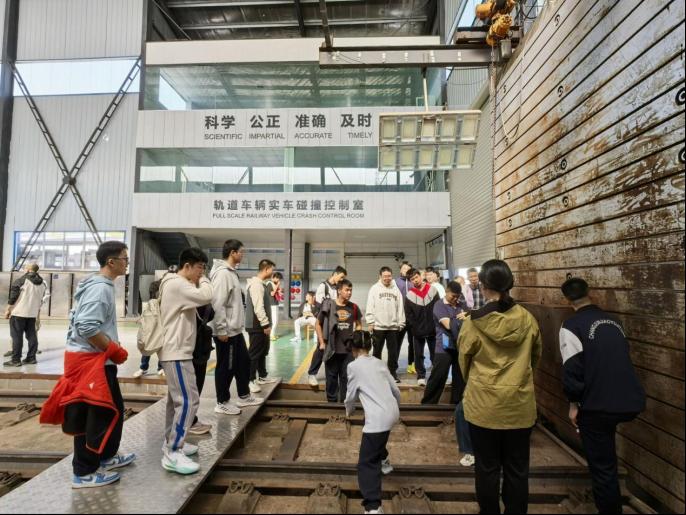 随后,在杨丽的带领下,学子们深入气动实验室与碰撞实验室,解锁轨道交通科技的核心奥秘。