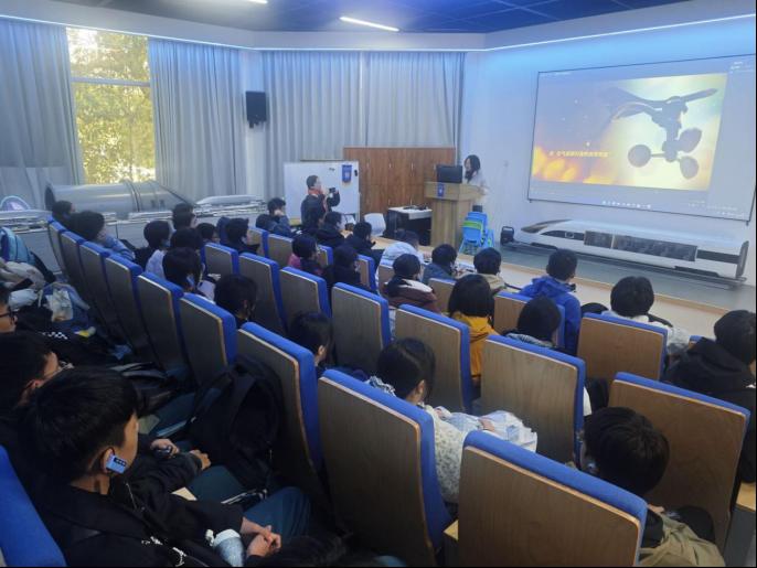实验室参观结束后,胡钰瑶为师生们带来了一场兼具科普性与励志性的专题讲座。在科普环节,她系统梳理了轨道交通领域的前沿技术成果与未来发展趋势,从智能驾驶到绿色节能,从跨境高铁到城市轨道交通网络建设,让同学们拓宽了科技视野;在学霸分享环节,她结合自身求学经历与科研感悟,分享了科学探索过程中的心得与方法,鼓励同学们保持好奇心与求知欲,勇于突破自我、追逐梦想。讲座结束后,同学们踊跃提问,就学业规划、专业选择等话题与胡钰瑶深入交流。