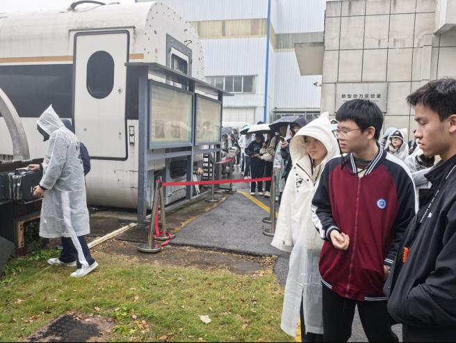 在轨道车辆实车碰撞试验室,讲解人员围绕实车碰撞试验平台,向学生介绍了列车安全试验的研究目的和实施方式。通过对防爬装置、吸能结构及碰撞后车体形变情况的讲解,学生们理解了列车安全并非“偶然可靠”,而是建立在大量试验数据和工程验证基础之上的科学结果。