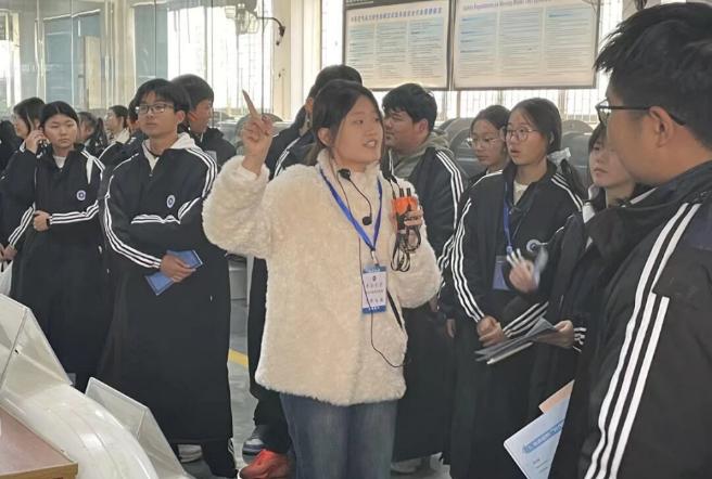在气动实验室,讲解人员介绍了高速列车空气动力学研究的主要内容,并结合动模型试验装置,讲解了列车高速交会、穿越隧道等工况下的工程问题。学生们在参观中进一步理解了工程试验在技术改进和性能提升中的重要作用,加深了对轨道交通技术体系的整体认识。